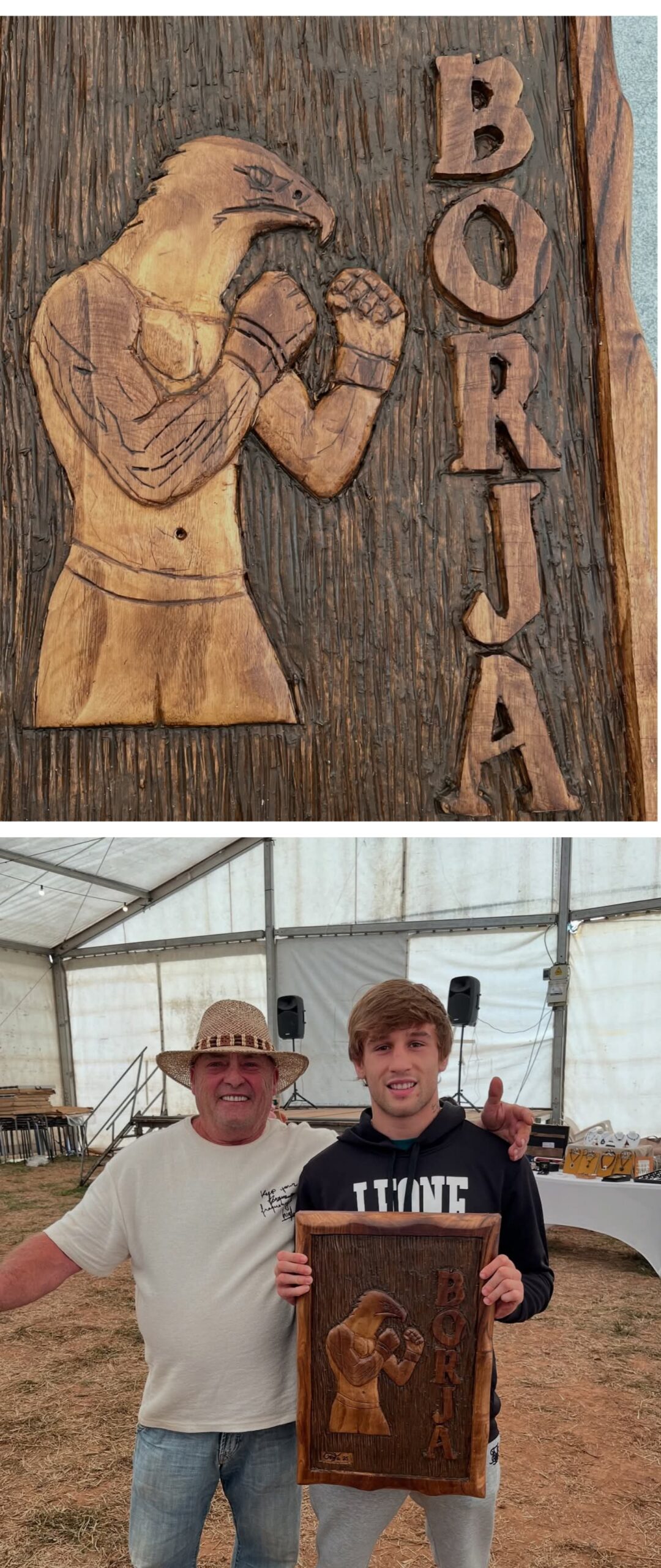 El artista luanquín, Gento realizó una talla de madera propia para la ocasión con un águila, aprovechando el sobrenombre con el que se conoce a Borja.