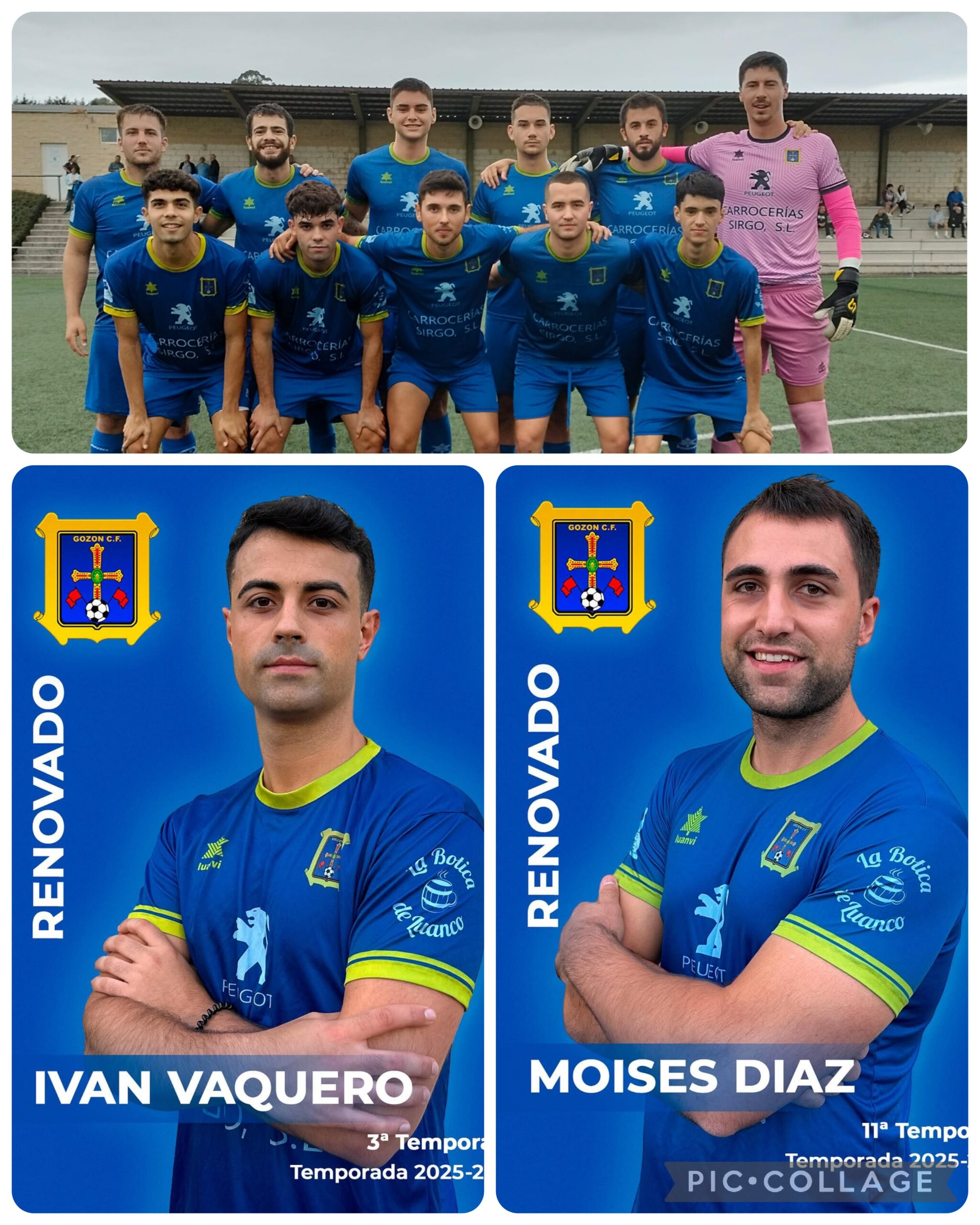 Se anunciaba en las redes del Gozón C.F., la renovación de Iván Vaquero y Moisés Díaz que continuarán en el equipo luanquín que jugará este domingo, en Claret a partir de las 13 horas, frente al Codema.