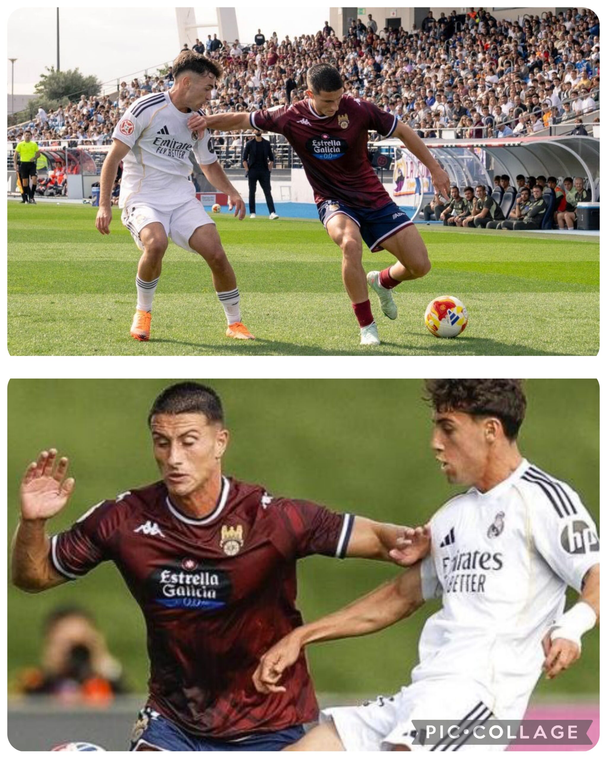 El Pontevedra perdió 1-0, con gol de César Palacios y Miguel Cuesta no rehuyó los duelos, como puede verse en las fotos del Mundo Deportivo y de El Faro de Vigo.