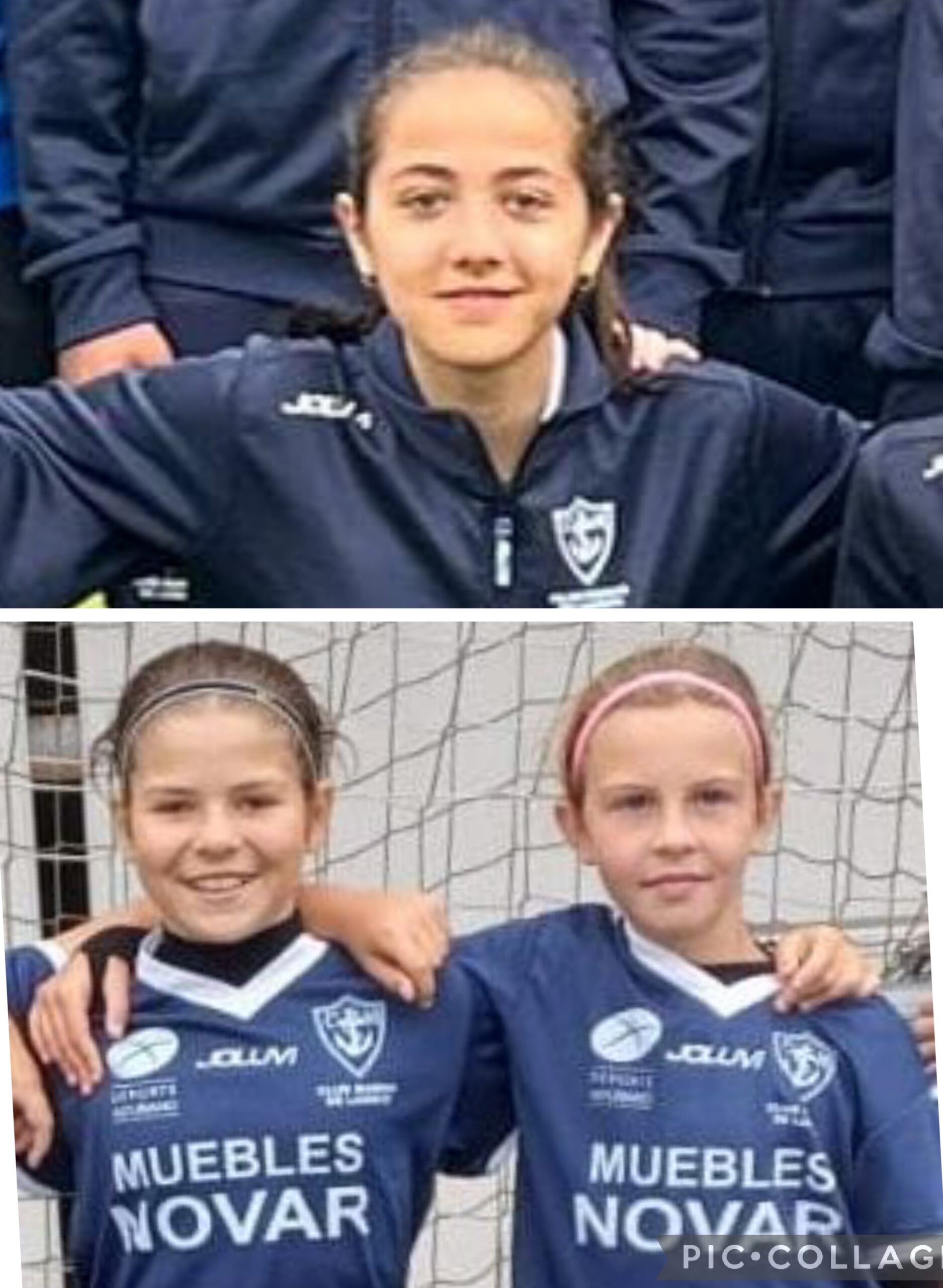 María de la Calzada- en la foto de arriba- está convocada para la selección asturiana sub 14, en la citación del próximo 26 de diciembre. Ese mismo día, la selección sub 12 (fútbol 8) se entrenará y han convocado a las jugadoras Carla Gómez y Lola Artime, ambas en la imagen inferior.
