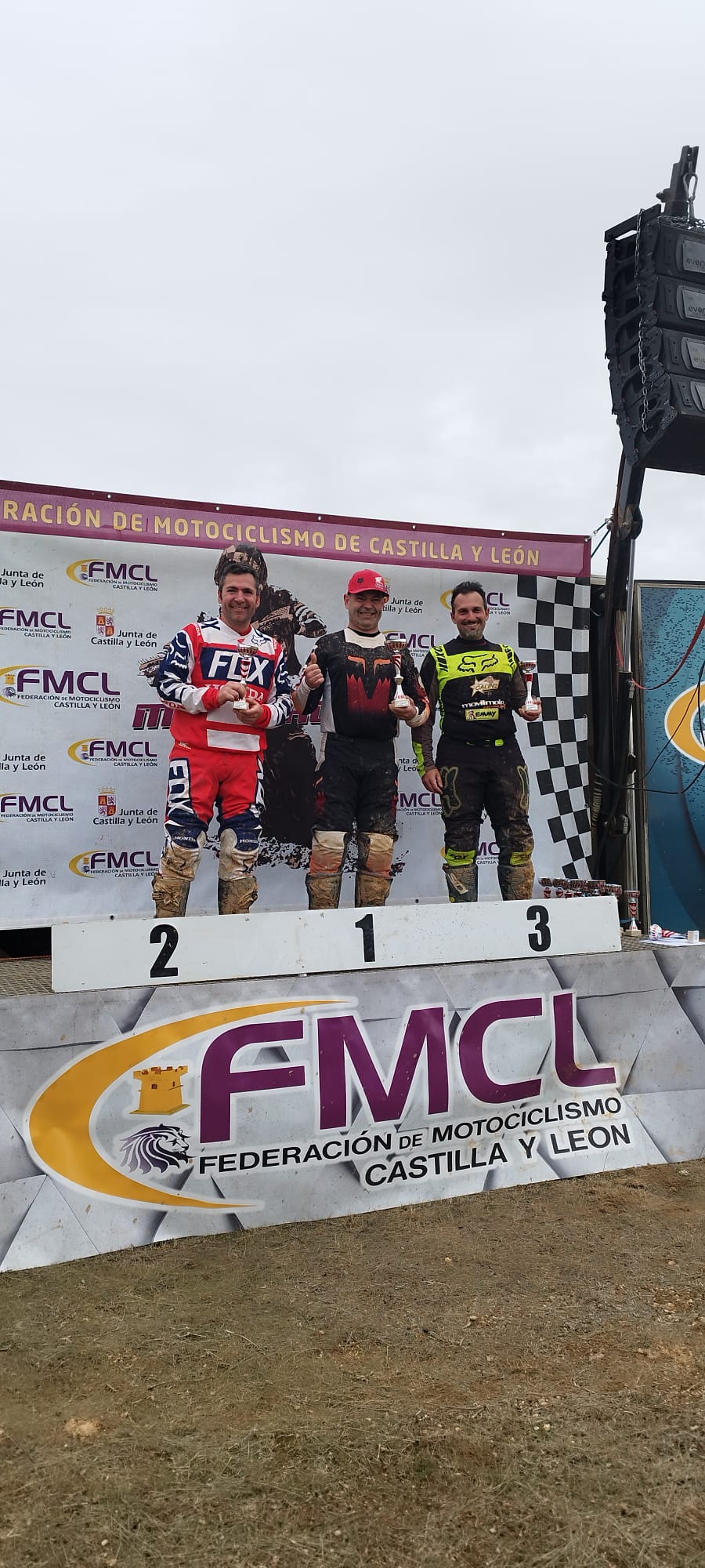 Podio gozoniego en la categoría Pre 99, en el Motocross de Valladolid. Jorge Calderón consiguió la victoria en la carrera, en un circuito espectacular y una mañana muy fría. Luis de la Peña quedó segundo en la general, a pesar de sufrir un pinchazo en la segunda manga, lo que añade aún más valor a su entrada en el podio.