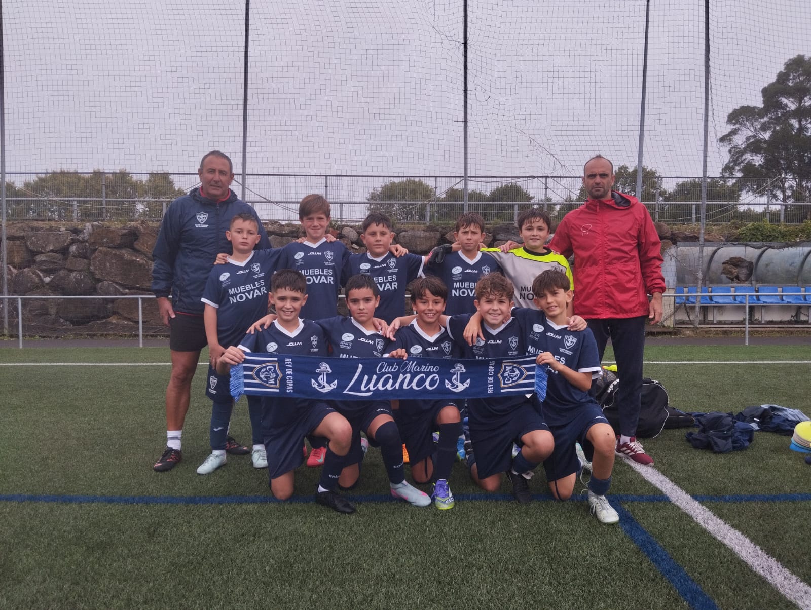 El coordinador David Gómez Antuña nos hace llegar la foto del equipo alevín A del Club Marino que logró la victoria ante el Navarro B por 5-1. En la citada imagen vemos a los jugadores acompañados por Josele y Guaya, entrenadores del primer conjunto alevín del Marino.