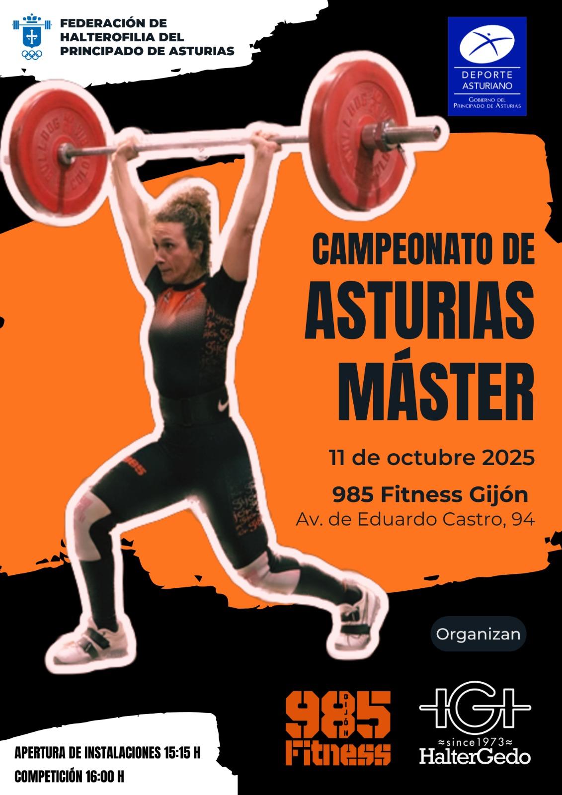 Mañana sábado, a partir de las 18 horas en las instalaciones gijonesas de 985 Fitness, se disputará el Campeonato de Asturias Máster de Halterofilia. Aurora Fernández competirá en el nivel W45 y el la categoría de 69 kilos. Aurora aspira al título y ha sido la elegida para el cartel anunciador de este campeonato.